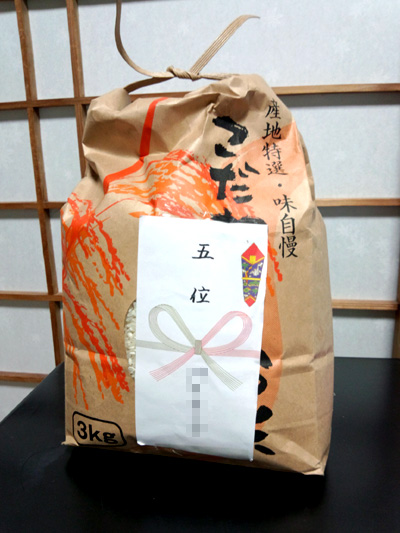 先日も賞品でお米3kg貰ったばかりだったのに、またお米だww