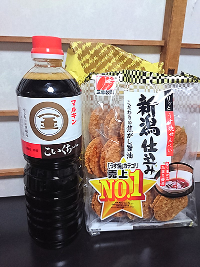 ラッキー賞で「醤油」、参加賞で「せんべい」を頂きました。